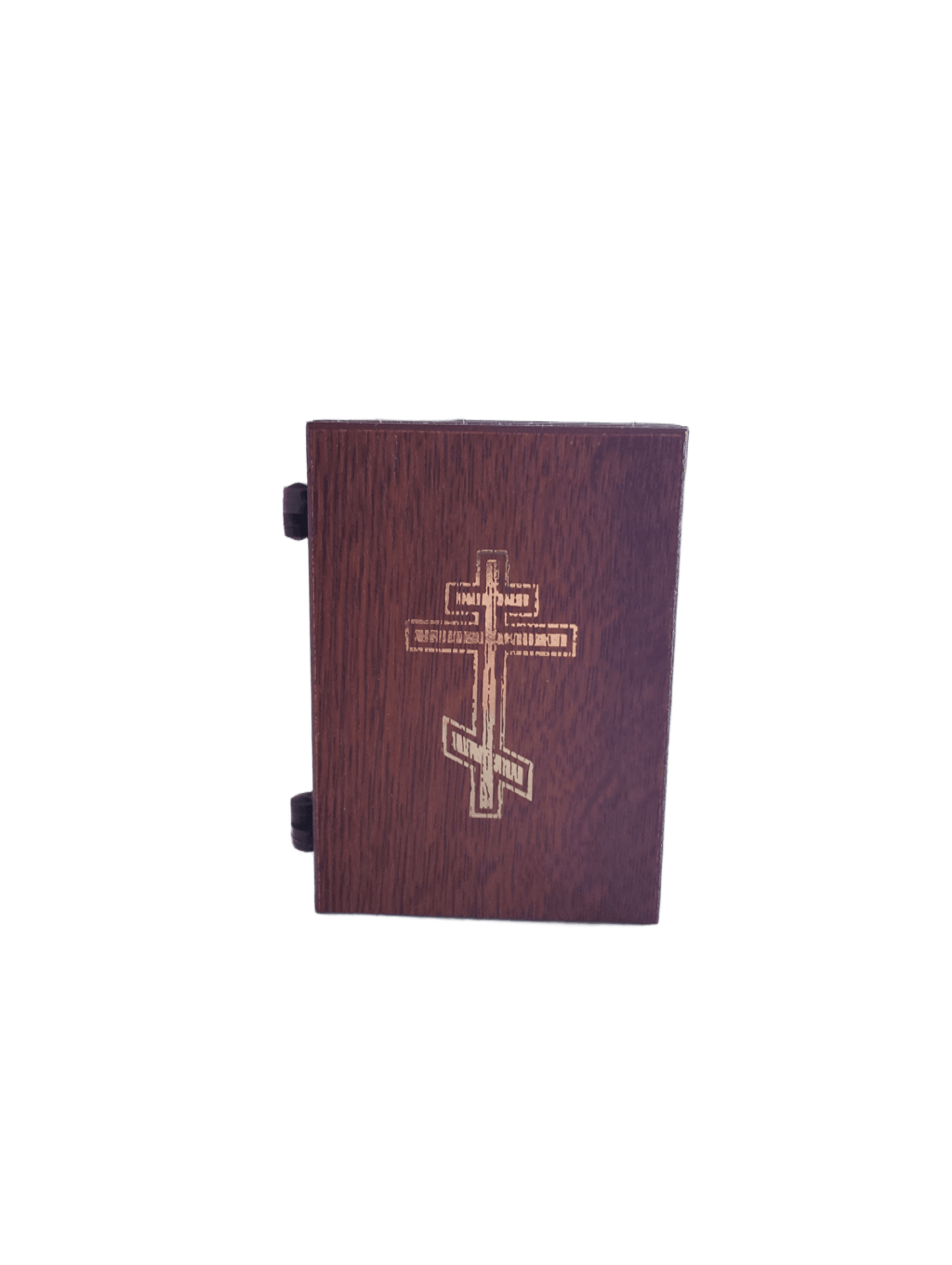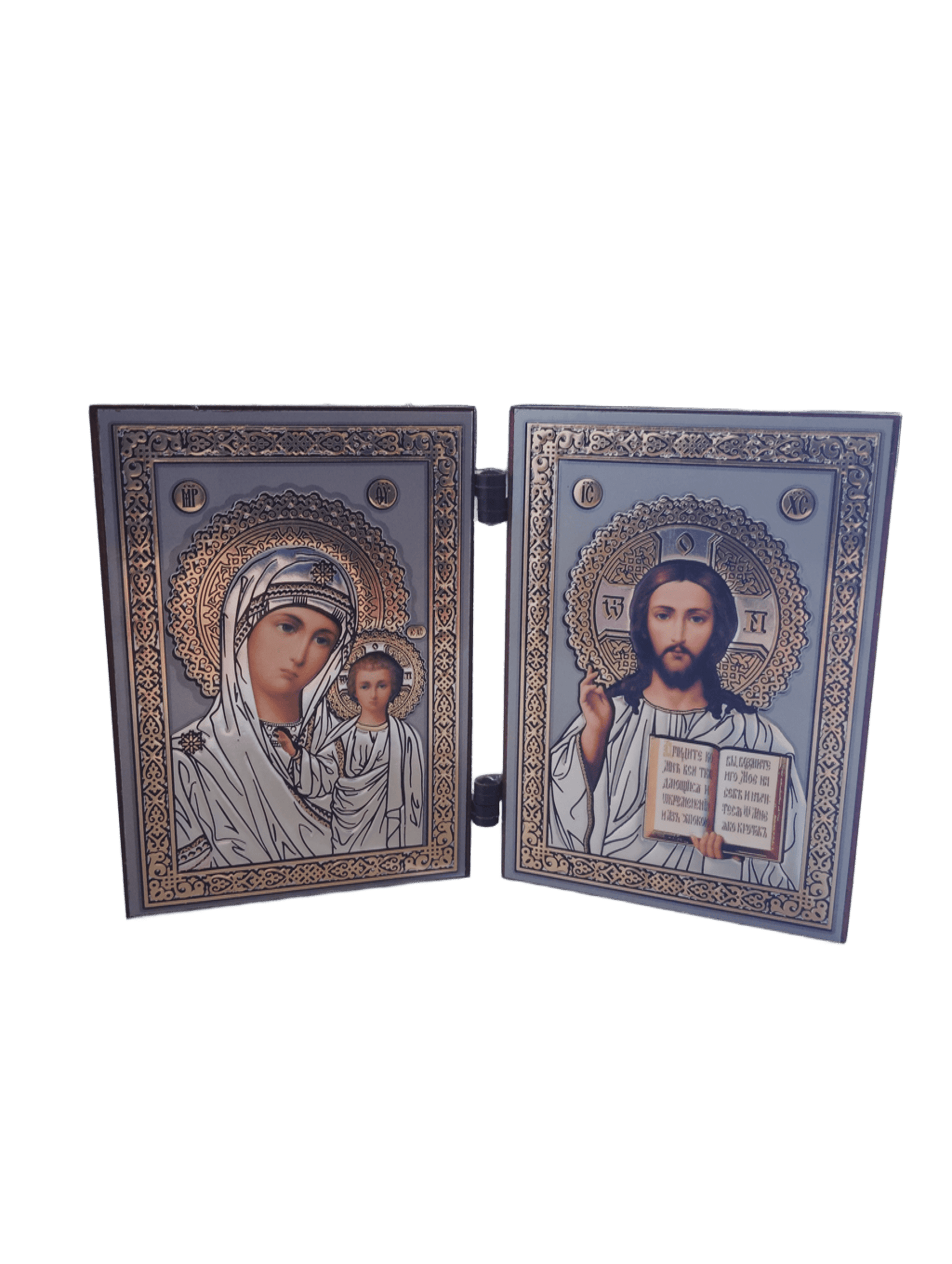 Дървен диптих с Христос Пантократор и Света Богородица Казанска. Размер в затворено положение 6 х 8.5 см.