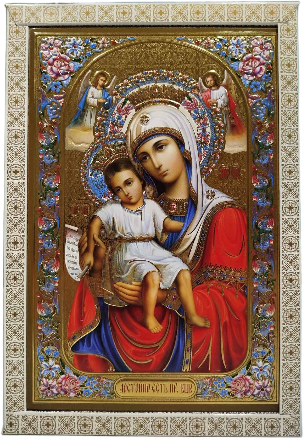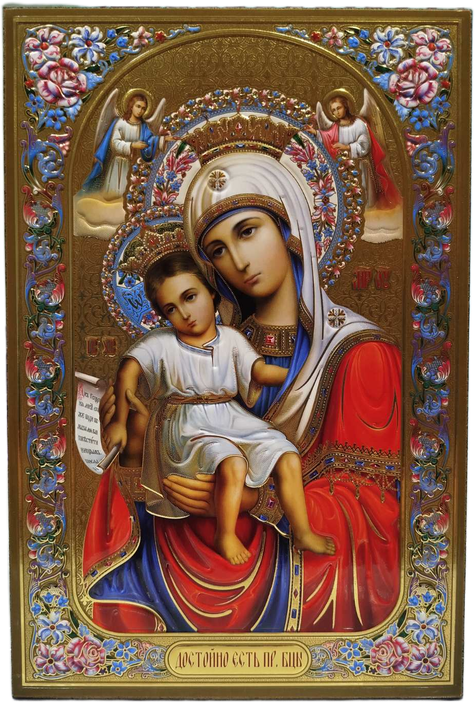 Релефна икона на Св. Богородица Достойно Ест в кутия. Произведена в Румъния.