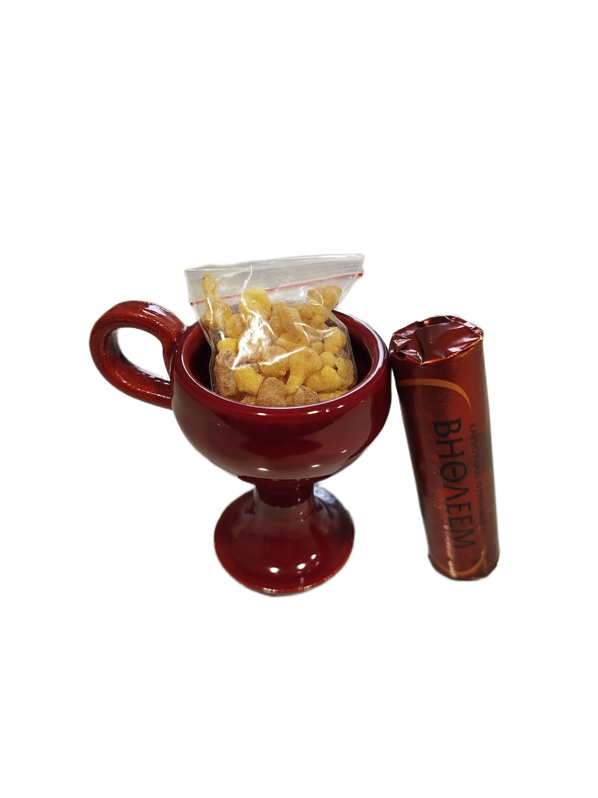 Комплект за прикаждане за дома. Състои се от кадилница, 10 гр. тамян и 7 въгленчета.