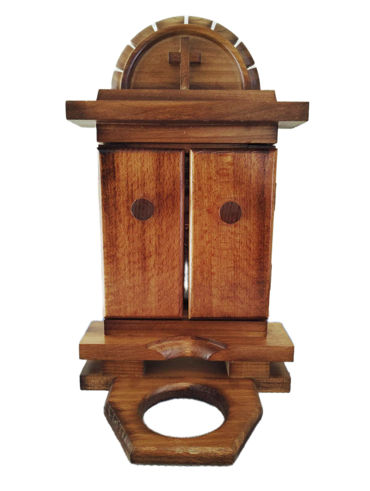Дървен иконостас Света Богородица Достойно Ест, Св. Христофор, Св. Архидякон Стефан, Св. Стилиян и Св. Атанасий. Размер в затворено положение 16 х 27 см.